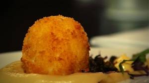 serviert mit mariniertem Rucola und geriebenem Hartkäse
